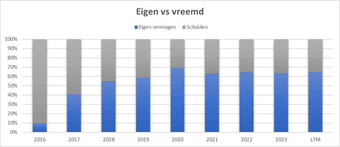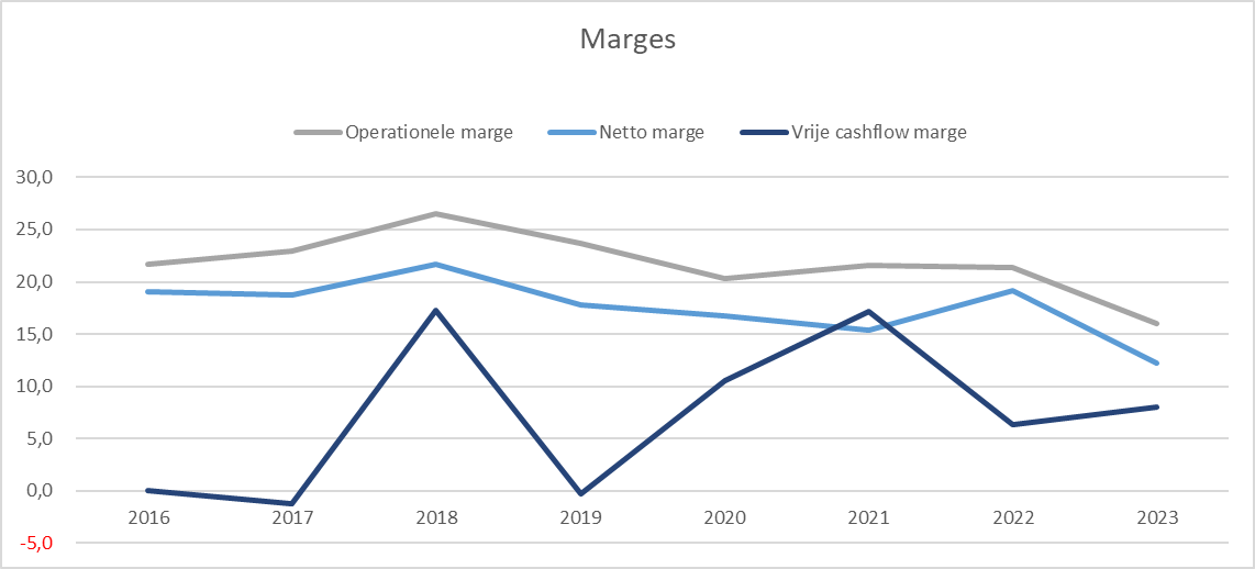 Als je naar de groeicijfers en rendementen kijkt, dan kan je niet anders dan concluderen dat dit zeer fraai is. Rendementen op eigen vermogen en op ingezet kapitaal van meer dan 20% en een nettomarge van 12,6% gemiddeld, inclusief het moeilijke 2022, wat zou je meer willen?