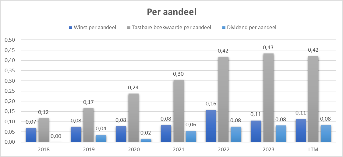 Cake Box noteert nog maar sinds 2018 op de beurs, waardoor we geen tienjarig overzicht hebben en voor de cijfers per aandeel zelfs maar op vijf jaar kunnen terugkijken.