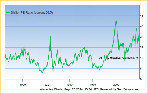 Een andere indicator, de Shiller koers-winstverhouding, staat momenteel op de derde hoogste stand ooit.