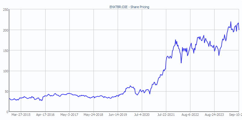 De koers van D'Ieteren steeg van €31,7 naar €200, zelfs na de daling die volgde op de aankondiging van het superdividend. Dit komt neer op een rendement van 531%.