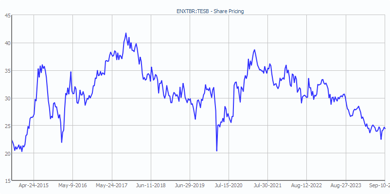 De koers van Tessenderlo ging echter slechts van €21,95 naar €24,4, wat een rendement van slechts 11% over tien jaar betekent.