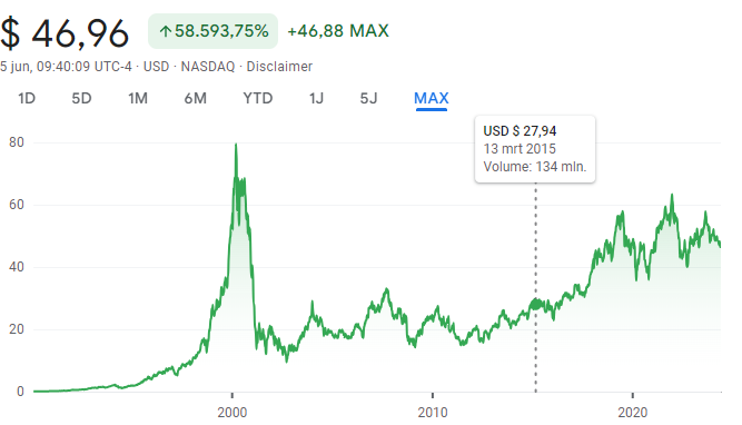 Ook tijdens de dotcom-bubbel, konden we dat fenomeen zien. Topbedrijven zoals Microsoft, Amazon, Google,... deden er meer dan tien jaar over om hun hoogste koers te overtreffen. Cisco is er na meer dan 20 jaar nog steeds niet in geslaagd.