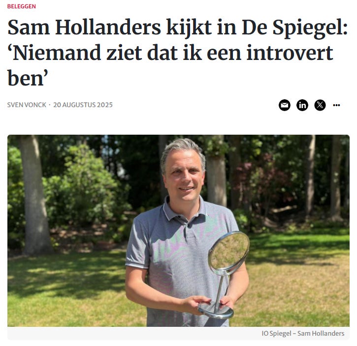 Daarnaast was ik te gast in de podcast 'De Spiegel' van Investment Officer. Wil je meer weten over de persoon achter Smart Capital? In de podcast praat ik open en eerlijk over mijn ervaringen, geldzaken, familie en wat me drijft. Je kunt de aflevering beluisteren via onderstaande link of in je favoriete podcast-app.