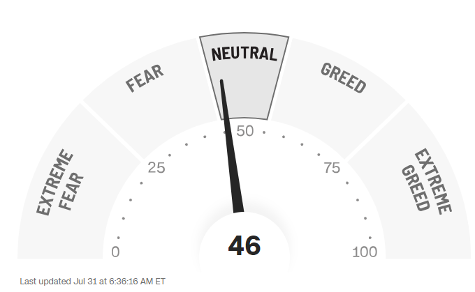 Het verbaast me dan ook niet dat de Fear & Greed Indicator (CNN) een neutrale positie aangeeft.