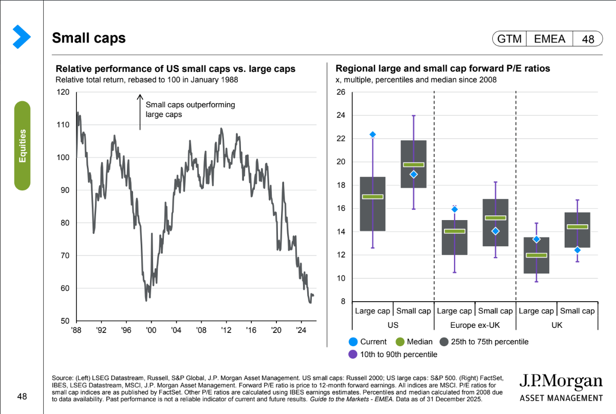 Die kansen zijn er vandaag de dag zeker te vinden in de small caps, mede door de hype rond passief beleggen. Hieronder volgen enkele grafieken uit het rapport van J.P. Morgan om dit te staven.