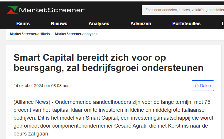 De naam Smart Capital is inderdaad niet uniek en komt in verschillende landen voor. Maar het blijft even schrikken wanneer je ziet dat een investeringsmaatschappij met dezelfde naam naar de beurs gaat (in Italië).