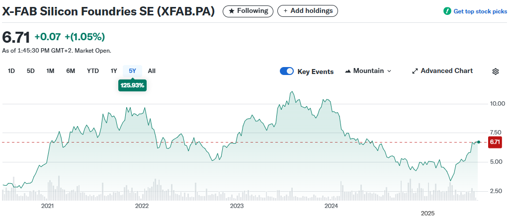 Om dat met onze eigen ervaring te illustreren: kijk bijvoorbeeld naar X-Fab. We kochten dit aandeel in het fonds in verschillende delen in 2020 en verkochten het midden 2023. Vorig jaar zijn we het opnieuw beginnen kopen, en dit jaar hebben we nog bijgekocht.